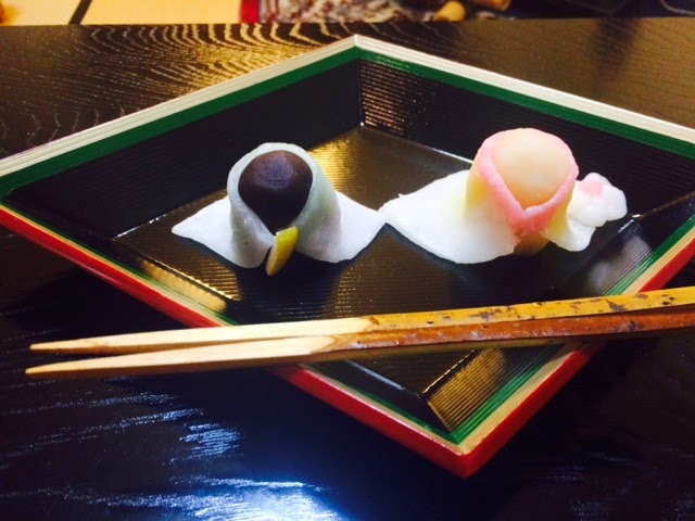 主菓子はみなちゃん手造の桜餅です。ちびっ子の菓子部長です。